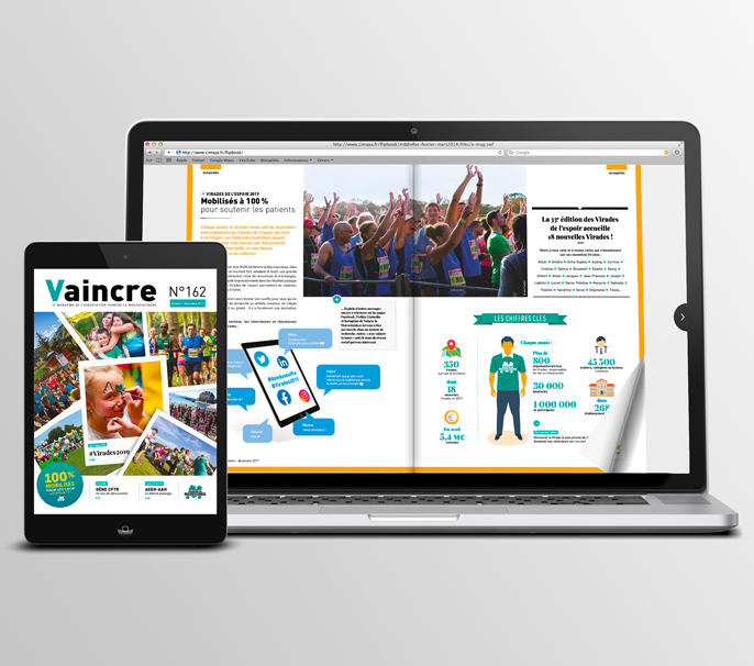 En 2020, CIMAYA accompagne l’association sur ses supports éditoriaux et réalise notamment son trimestriel Vaincre, et propose une refonte graphique du magazine.